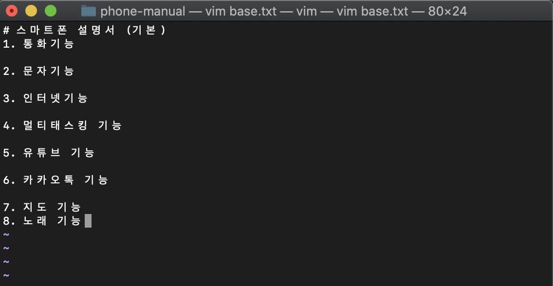 원래 기존의 base.txt는 7번 항목 이후 한 줄을 띄운 상태로 저장을 했기 때문에 8번을 위와 같이 입력하면 자료 간의 충돌이 발생을 합니다.