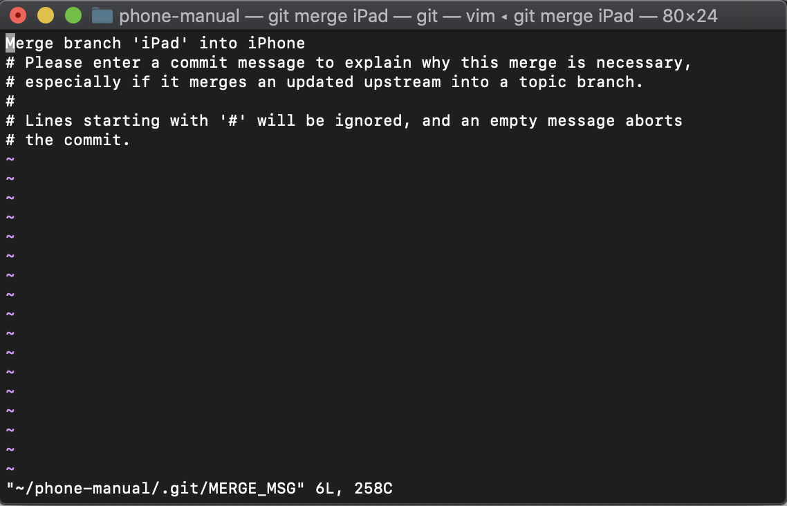 만약 병합이 성공적으로 이루어졌다면 vim이 실행되면서 아래와 비슷하게 나올 겁니다.