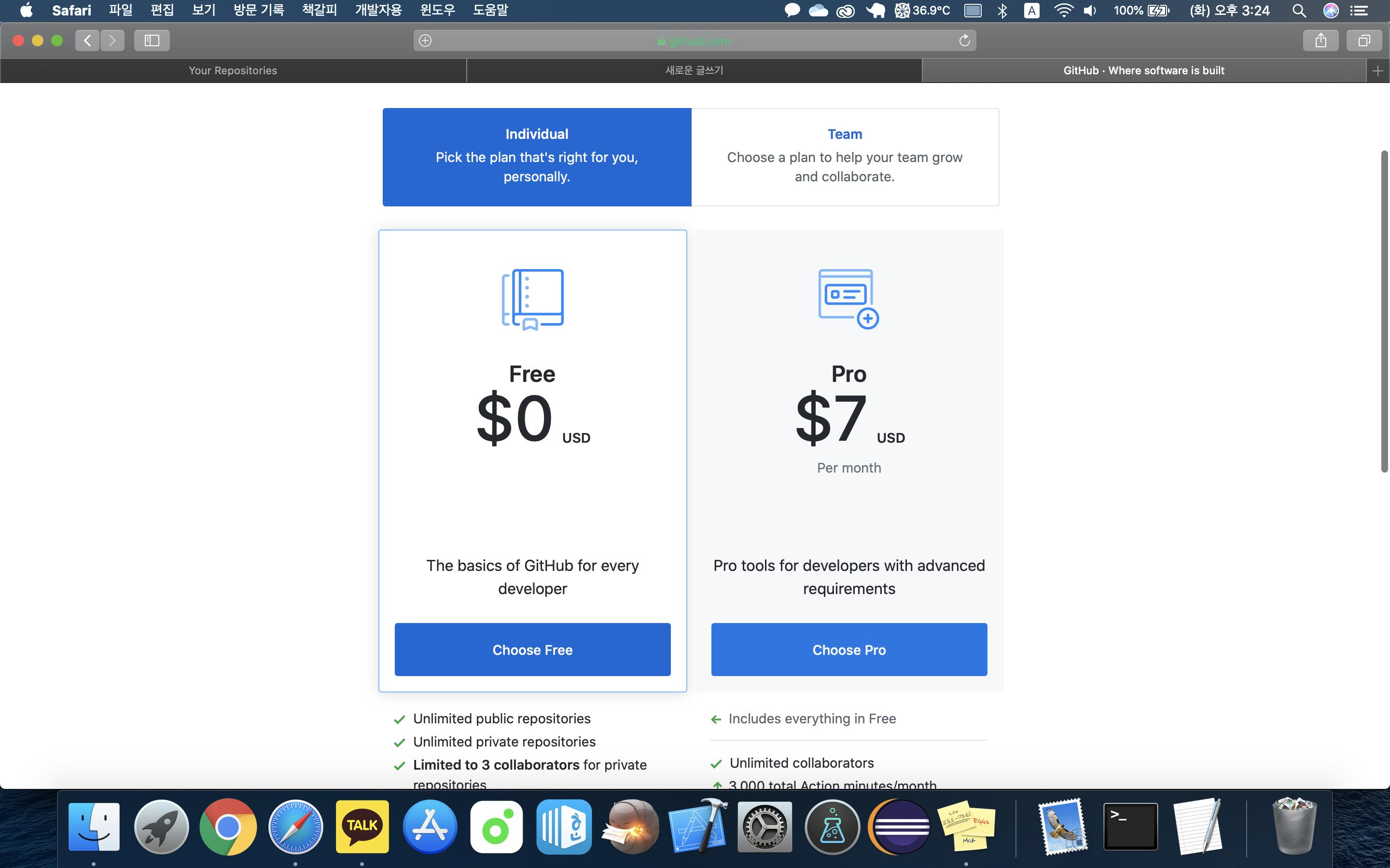 저희는 활용도 높은 기능을 활용하지 않고 기본적인 기능만 활용해도 충분하기 때문에 개인으로 신청해주시면 됩니다. 무료예요