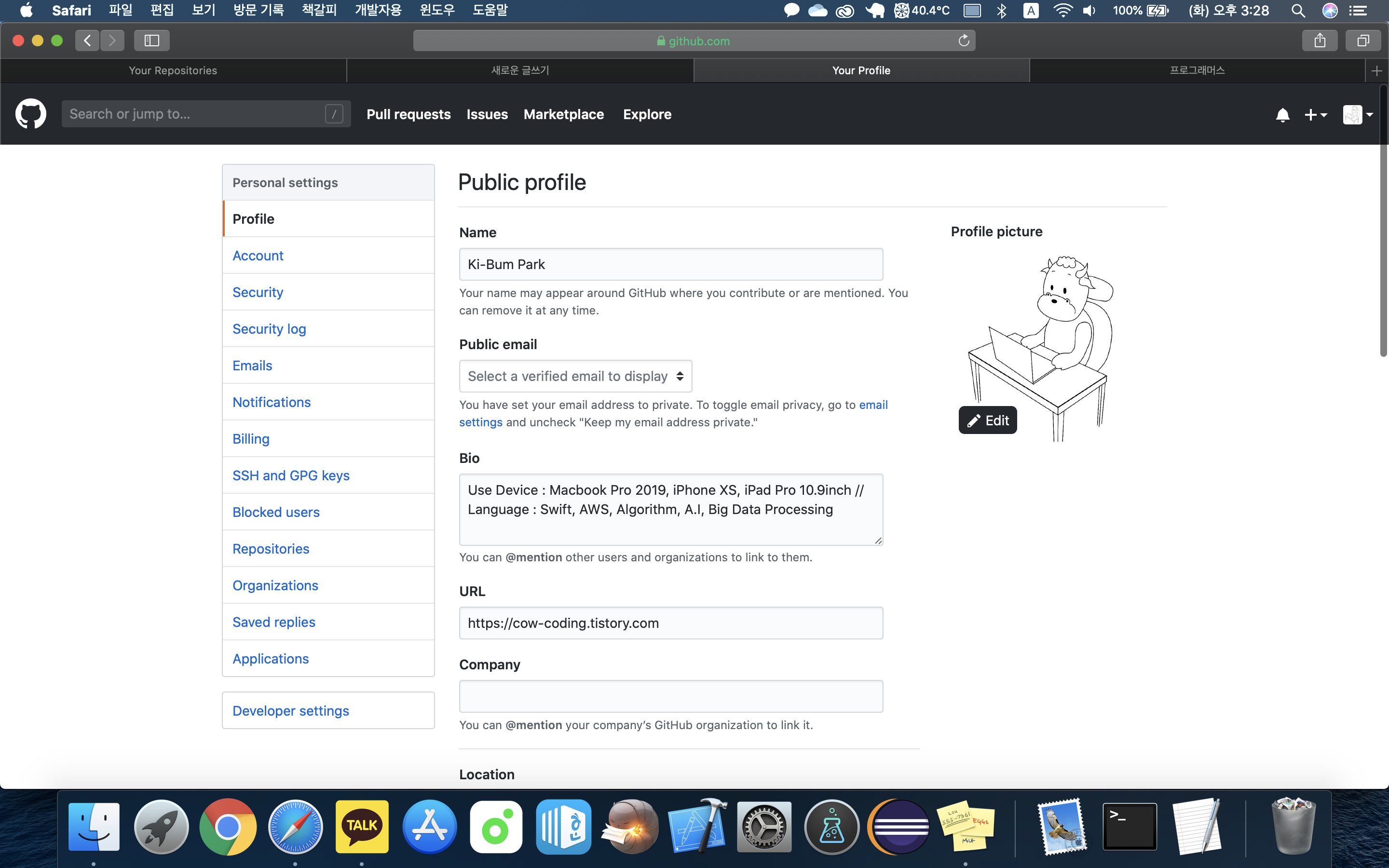프로필 수정에 들어가셔서 본인이 입력할 것들만 적어주시면 됩니다.