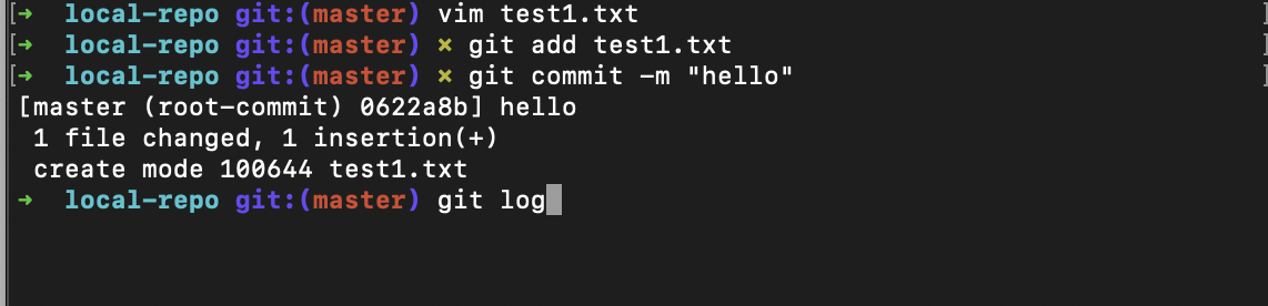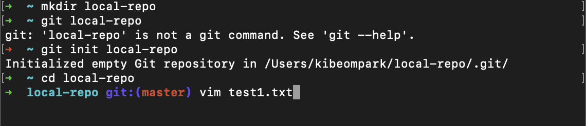 test1.txt를 만들어서 아무 글자나 적고 커밋을 진행해줍시다.