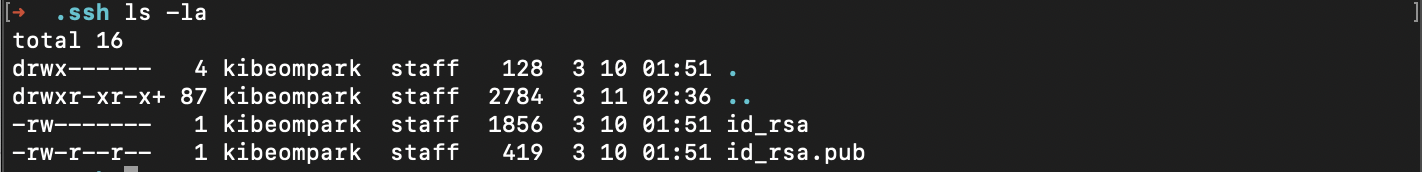 위의 경로가 프라이빗 키가 저장된 경로, 아래가 퍼블릭 키가 저장된 경로입니다.