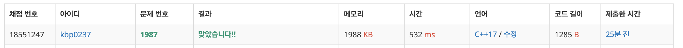 깃허브 - https://github.com/cow-coding/algorithm/blob/master/BOJ/1987.cpp