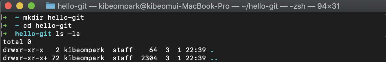 연결된 깃이 만들어진 거고 그 내부를 보여준 겁니다. 하지만 실제로 해당 경로에 가면 hello-git이란 파일은 존재하지 않을 겁니다!