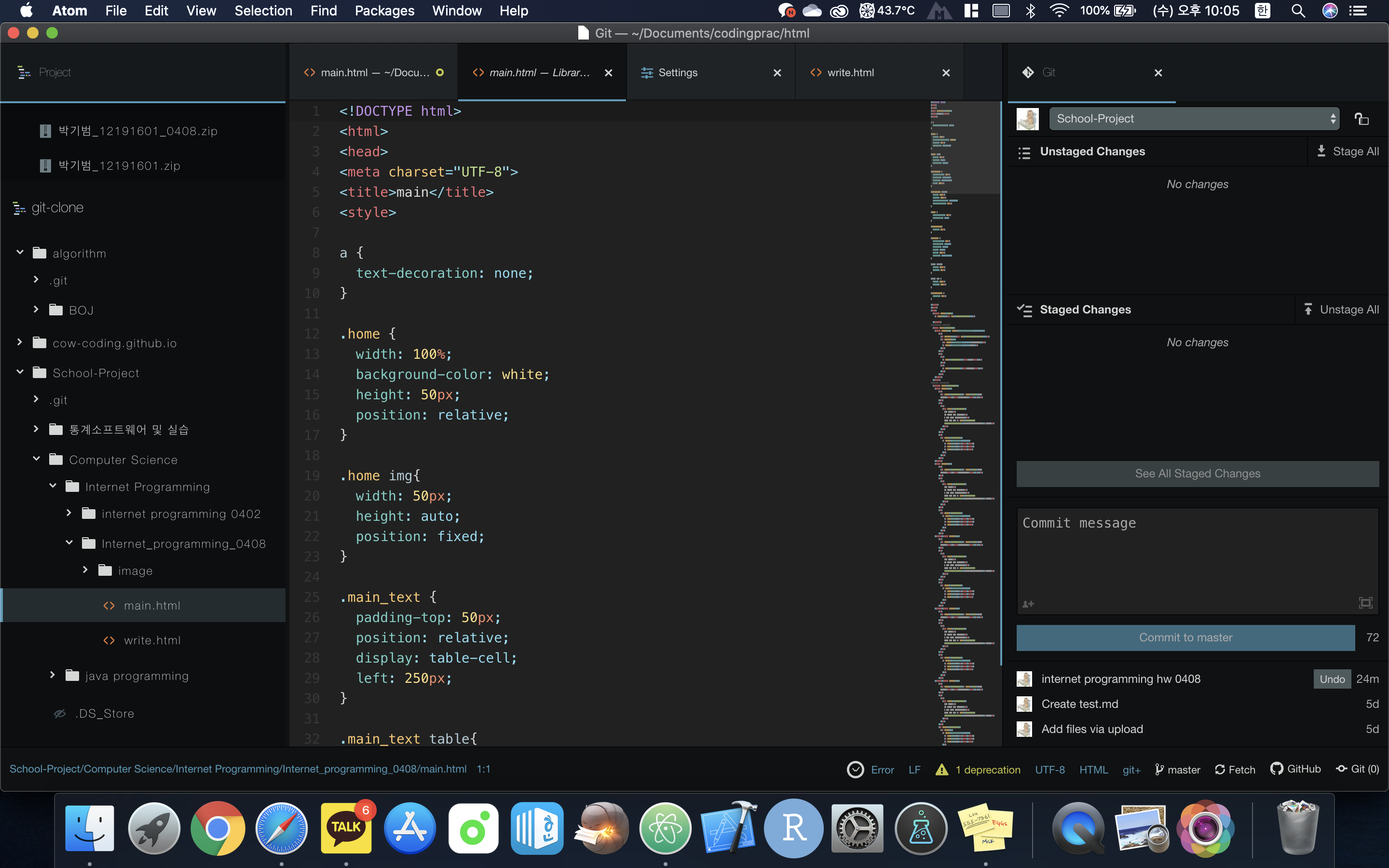 사실 설치는 이전에 해놨는 데 이번 학기부터 본격적으로 잘 사용하는 아톰(Atom) 에디터입니다.