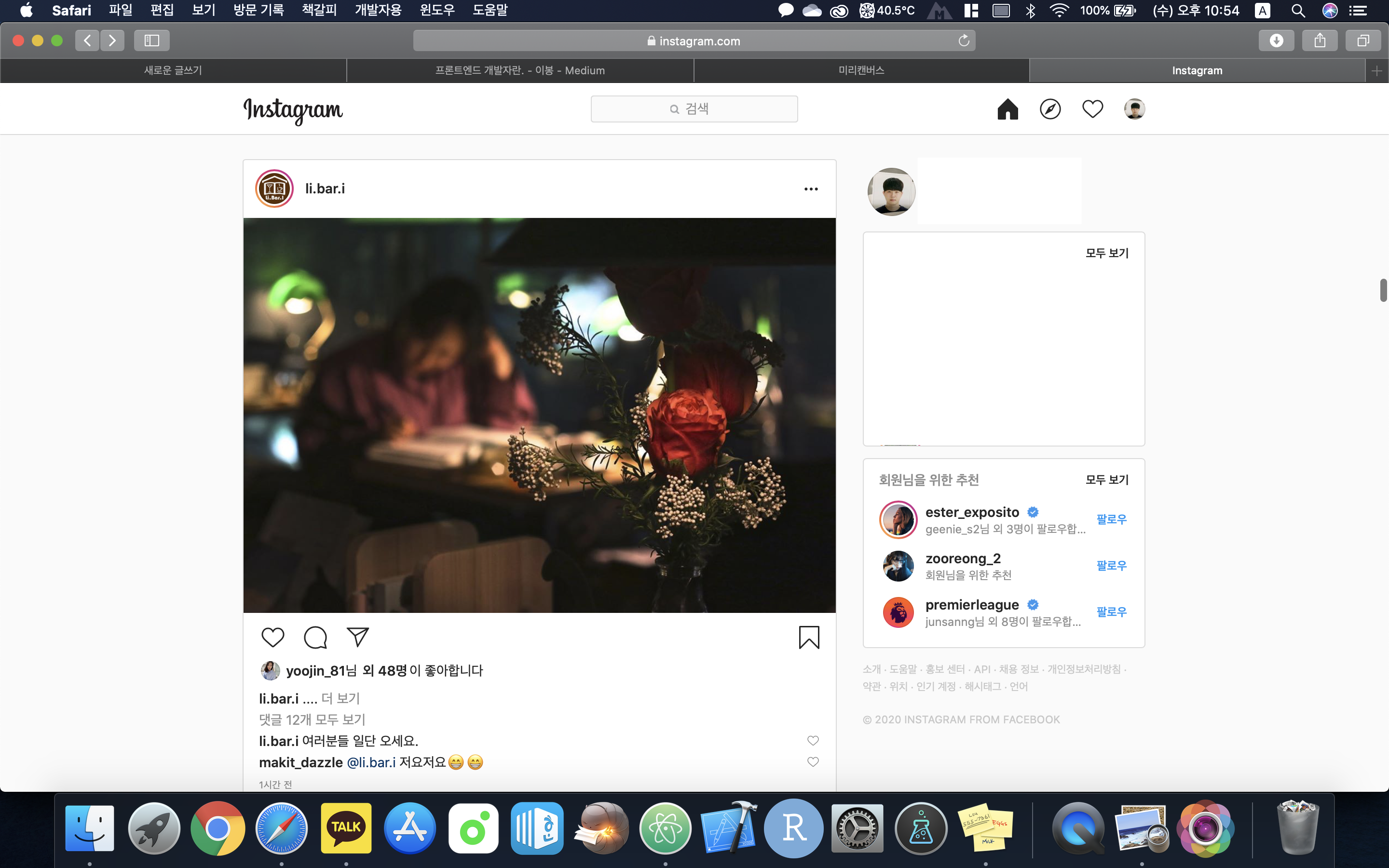 사실 인스타그램은 모바일에 최적화된 SNS라 웹 인터페이스는 크게 특별한 것은 없습니다.