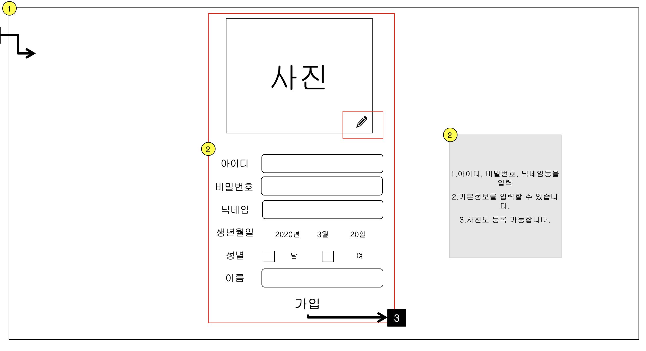 회원가입 페이지입니다. 사진을 가져올 수 있게 만들고, 기본적인 선택사항을 입력 가능하게 해 줍니다.