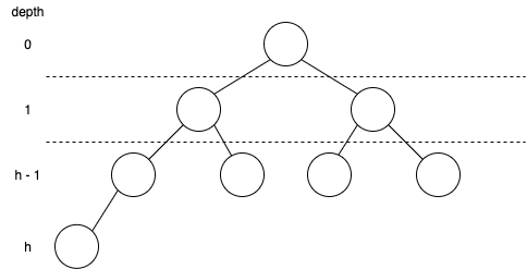 완전 이진트리를 기준으로 할 때, 현재 이진트리가 h-1까지 구성되어있고 새로 데이터를 넣으면 깊이 h에 새로운 노드가 삽입되는 상황이라고 하자.