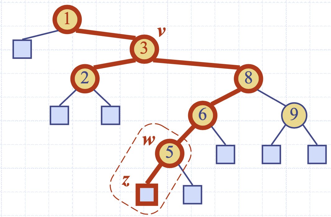 반복문의 이동은 현재 노드가 더미에 도달한 상황에서 종료시킨다. 리프가 더미에 도달했다는 의미는 찾고자하는 노드가 없다는 의미이므로 해당 노드가 없다는 의미로 NULL을 반환해준다. 찾는 노드를 찾았다면 해당 노드를 반환해주면된다.