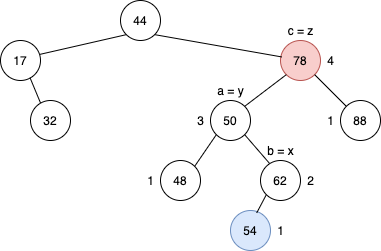- z노드는 최초로 height-balance가 깨진 노드로 한다. (78노드)