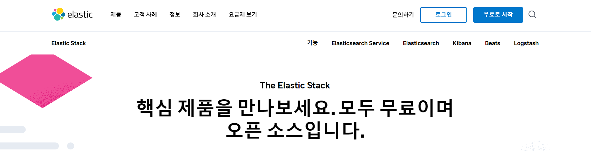 동일한 방식으로 키바나, 로그 스태시, 파일 비츠도 설치합시다. 키바나, 로그 스태시, 비츠는 위의 사이트에서 상단의 제품으로 가시면 아래 처럼 ELK stack부분이 나타납니다. 해당 부분을 클릭하시면 설치가 가능합니다.