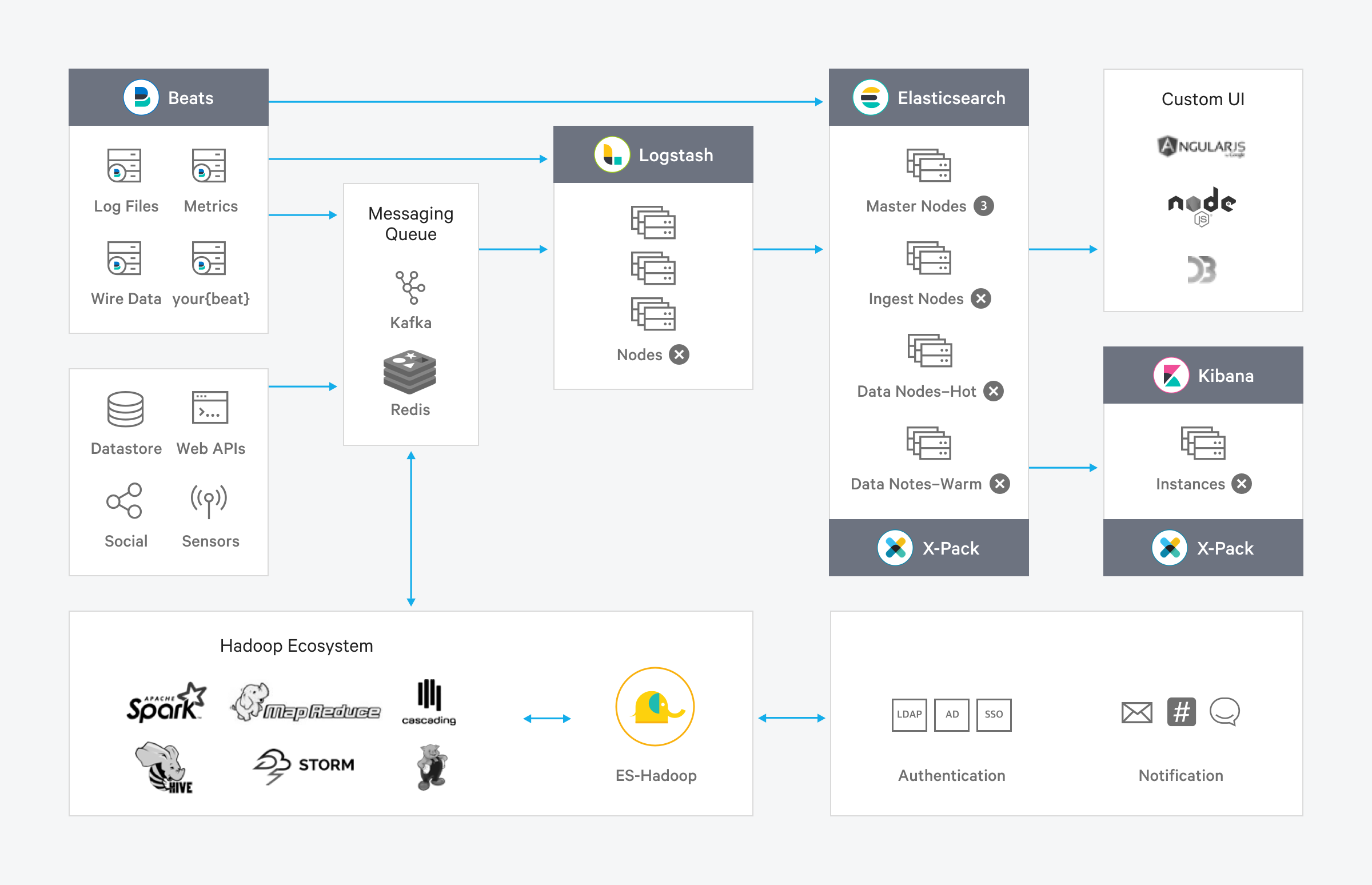 네이버는 클라우드 플랫폼 자체에 Hadoop Ecosystem과 ELK stack을 활용하고 있습니다. 일반적으로 Hadoop, Kafka, Spark를 통해 데이터를 저장을 하면 logstash를 통해 로그 및 이벤트 데이터를 수집합니다. 이렇게 수집된 로그 데이터를 elasticsearch는 의미있는 방법으로 검색이 가능하게 만들어 줍니다. 그 후 데이터들을 활용해서 데이터 시각화 및 분석을 위해 kibana를 활용하는 파이프라인이 일반적으로 구축됩니다.