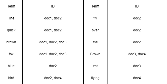 위의 도큐먼트가 저장되어 있다고 가정하면 엘라스틱서치는 아래와 같이 인덱싱을 진행합니다.