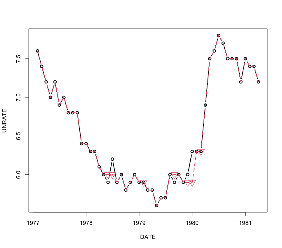 rand_unemp['impute.rm.lookahead'] = rand_unemp[['UNRATE']].rolling(3, min_periods=1, center=True).mean()